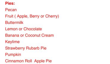 Fruit/Pecan Pie/Lemon/Blueberry/Andes Mint